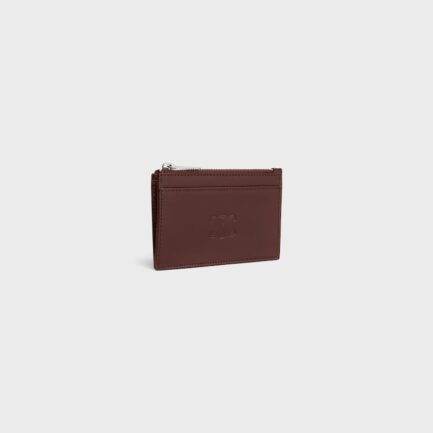 Zipped Card Holder in Satinated calfskin with triomphe embossed