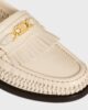 TRIOMPHE METAL PIECE AND DECORATIVE FRINGES ON THE APRON OF THE SHOE